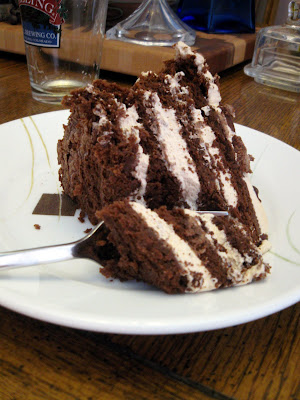 This past weekend Cassie's parents came to our house so Cassie's dad could help us with a little work on the house. A fringe benefit of having a carpenter in the family is that you get professional work done for minimal payment. As payment we knew we needed to make a great meal that wouldn't be easily forgotten. Since it was during Passover dessert posed a slight challenge, but when Cassie found the recipe for Lighter Air Chocolate Cake from Smitten Kitchen she knew that was our dessert. We found the recipe originally through the Chocolate Cake Roll post this past week, but since we don't have the right pan for a roll cake we decided to go with the stacked round cake version instead.